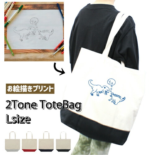 「イラスト お絵描きそのままプリント」2トーントートバッグ Lサイズ 絵をプリント 描いた絵 似顔絵プリント イラストプリント 【1460l】収容 収納 手提げトート 手提げバッグ 記念品 贈答品 プレゼント かばん こどもの絵 おこさまの絵 ギフト