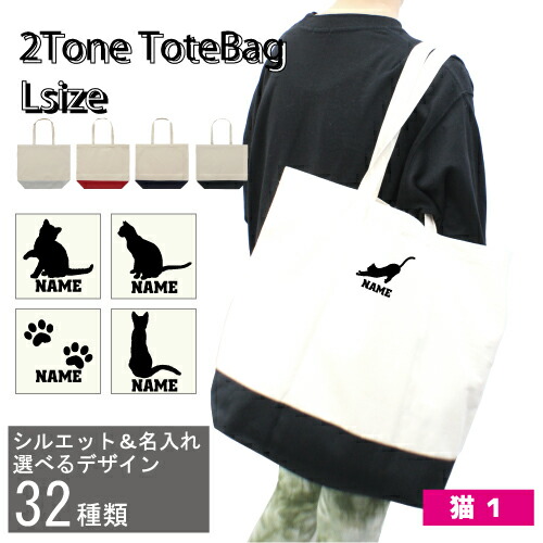 名入れ2トーンキャンバストートバッグLサイズ「猫1」/綿 キャンバス地 通勤 通学 手提げカバン 【1460l】アメリカンショートヘアー ベンガル スコティッシュフォールド ブリティッシュ ロングヘアー ショートヘア ヒマラヤン