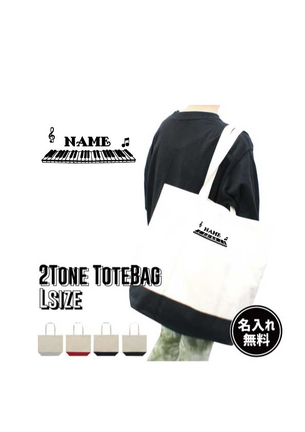 「ピアノ」名入れ2トーンキャンバストートバッグLサイズ 綿 キャンバス地 名入れギフト 手提げトート 通勤 通学 手提げカバン プチプラ 新生活 母の日ギフト 父の日ギフト