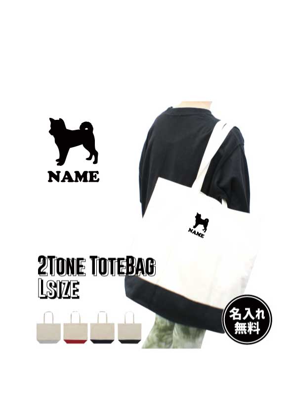 「柴犬」犬種別ドッグシルエット 入れ2トーンキャンバストートバッグLサイズ 綿 キャンバス地 名入れギフト 手提げトート 通勤 通学 手提げカバン プチプラ 新生活 母の日ギフト 父の日ギフト