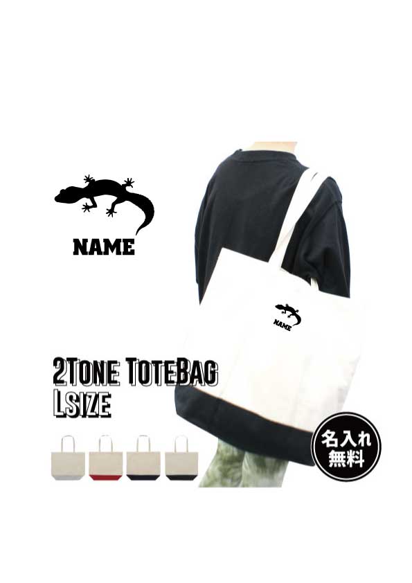 「トカゲ」名入れ2トーンキャンバストートバッグLサイズ 綿 キャンバス地 名入れギフト 手提げトート 通勤 通学 手提げカバン プチプラ 新生活 母の日ギフト 父の日ギフト ヒョウモントカゲモドキ 爬虫類