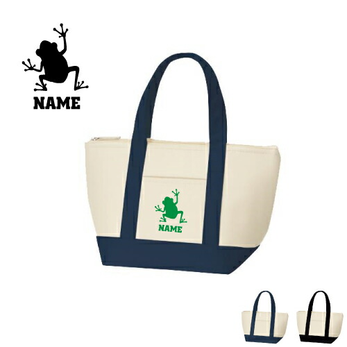 「カエル」名入れ保冷トートバッグ 保冷保温 クーラーバッグ ランチバッグ お弁当袋 舟形タイプ ファスナー仕様 ポケット付き 保冷バッグ ペットボトル水筒も入る 部活 お名前 【htbs】母の日のプレゼント 父の日プレゼント 蛙、Frog、爬虫類