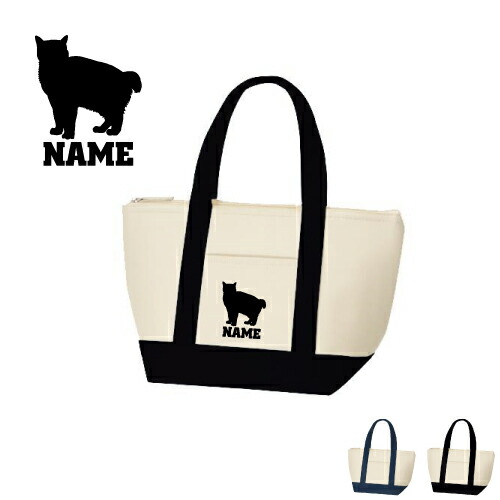 アメリカンボブテイル 名入れ保冷トートバッグ 保冷保温 クーラーバッグ ランチバッグ お弁当袋 舟形タイプ ファスナー仕様 ポケット付き 保冷バッグ ペットボトル水筒も入る 部活 お名前 母の日のプレゼント 猫 ネコ ねこ キャット ペット