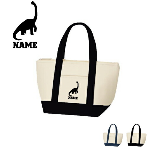 ブラキオサウルス3 名入れ保冷トートバッグ 保冷保温 クーラーバッグ ランチバッグ お弁当袋 舟形タイプ ファスナー仕様 ポケット付き 保冷バッグ ペットボトル水筒も入る 部活 お名前 母の日のプレゼント 恐竜 化石 肉食 草食 雑食 海 陸