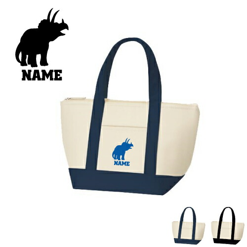 トリケラトプス2 名入れ保冷トートバッグ 保冷保温 クーラーバッグ ランチバッグ お弁当袋 舟形タイプ ファスナー仕様 ポケット付き 保冷バッグ ペットボトル水筒も入る 部活 お名前 母の日のプレゼント 恐竜 化石 肉食 草食 雑食 海 陸