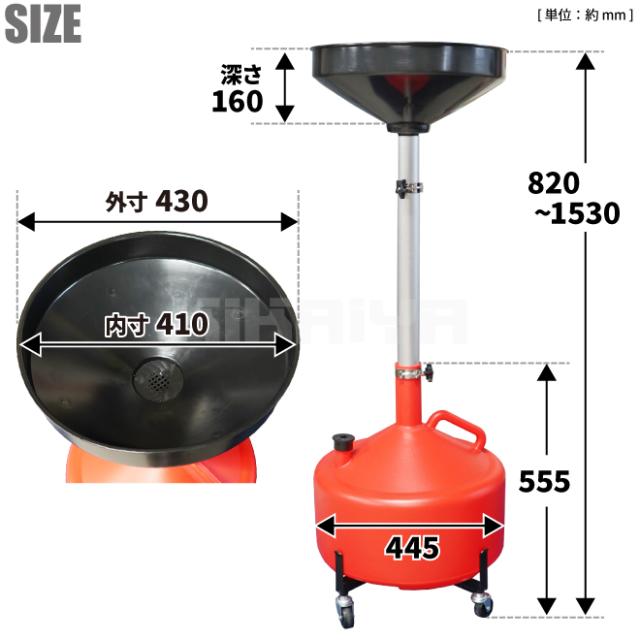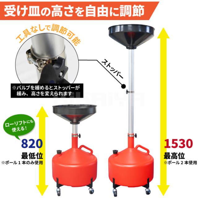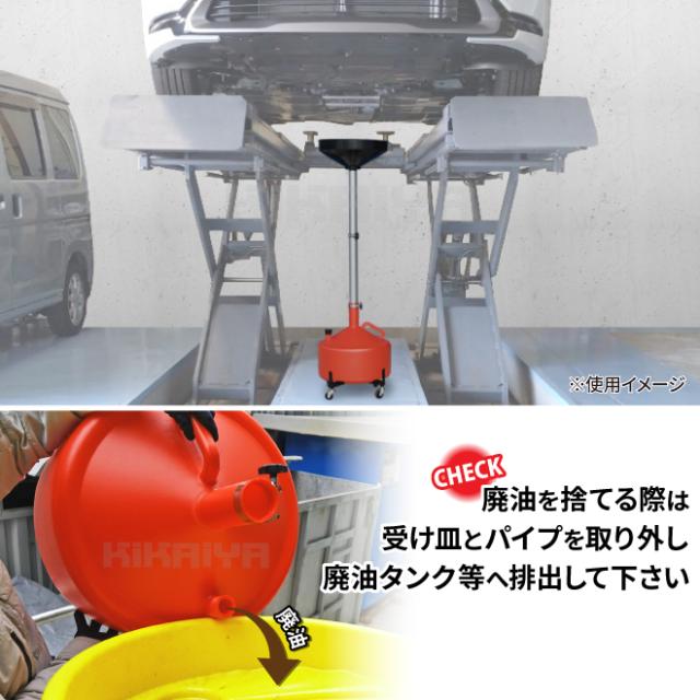 オイルドレン エンジンオイル下抜き 30L オイルドレーナー 廃油受け キャスター付き レッド KIKAIYA