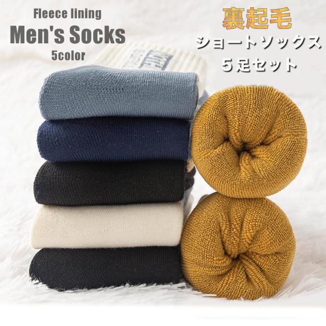 tsa 極暖 裏起毛 5足セット 保温 ショートソックス #A522c1 メンズ ボア 靴下 ロゴ クルーソックス