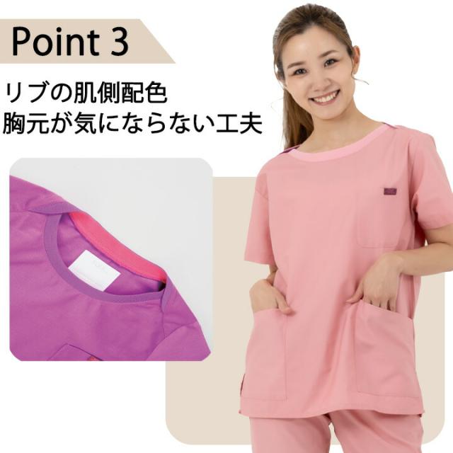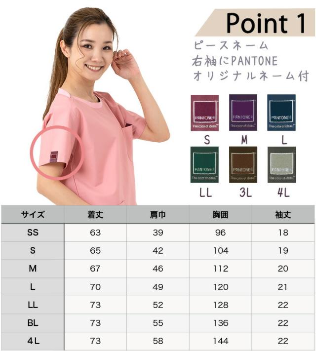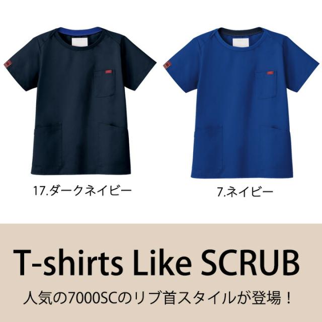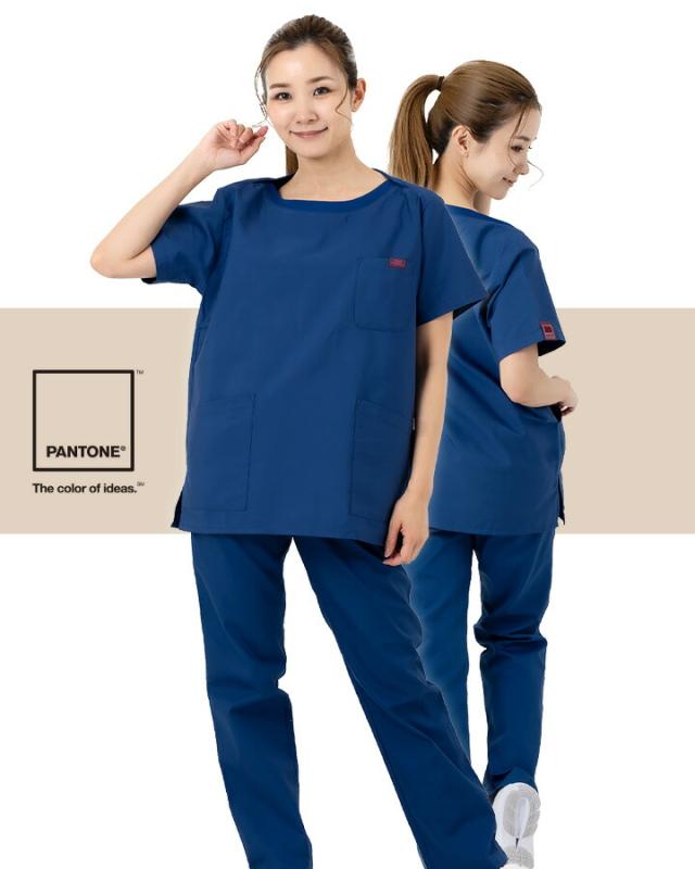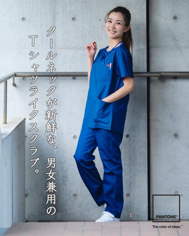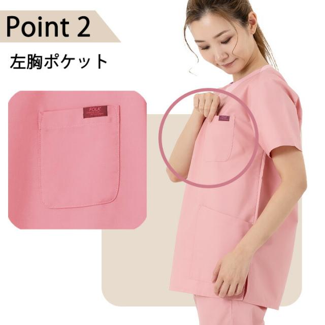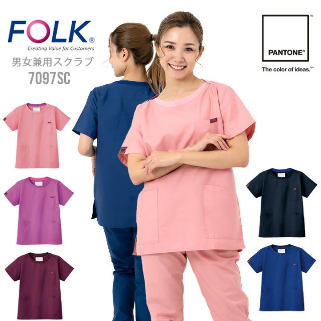 フォーク スクラブ 白衣 FOLK 7097SC 半袖 男女兼用 PANTONE ストレッチ 医療 医師 薬剤師 医療白衣 看護師 介護 病院 ナース 透け防止 Tシャツタイプ 動きやすい ネイビー ピンク ブラック