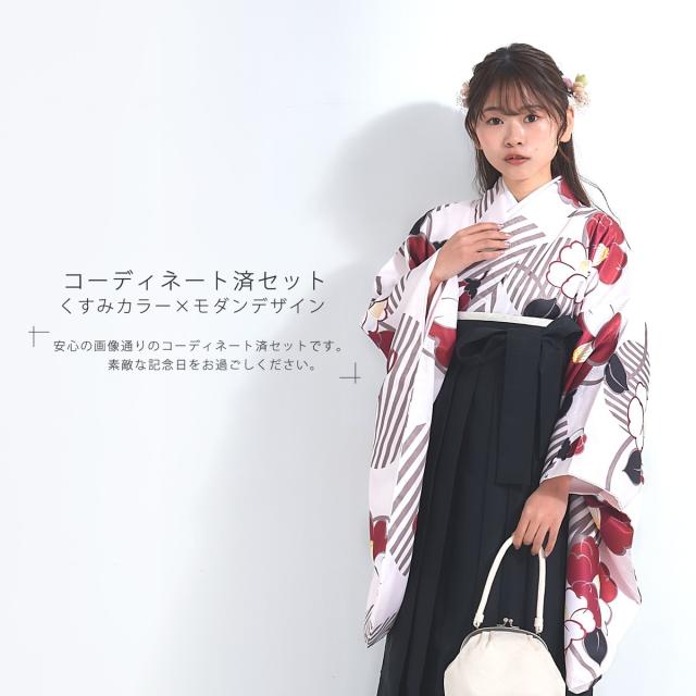 袴 4点セット 卒業式 はかま レディース モダン 4サイズ S M L LL 黒 椿 赤 ピンク 無地 女性 大学生 ジュニア 小学生 女の子 袴 セット着物セット 成人式 謝恩会 購入 販売 幾何学文様 送料無料
