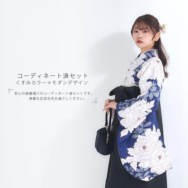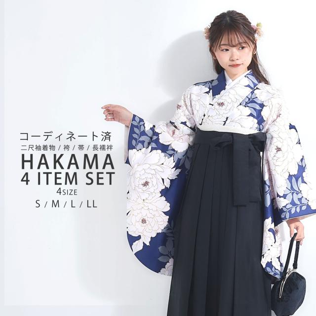 袴 4点セット 卒業式 はかま レディース モダン 4サイズ S M L LL 黒 青 白 牡丹 無地 女性 大学生 ジュニア 小学生 女の子 袴 セット着物セット 成人式 謝恩会 購入 販売 幾何学文様 送料無料