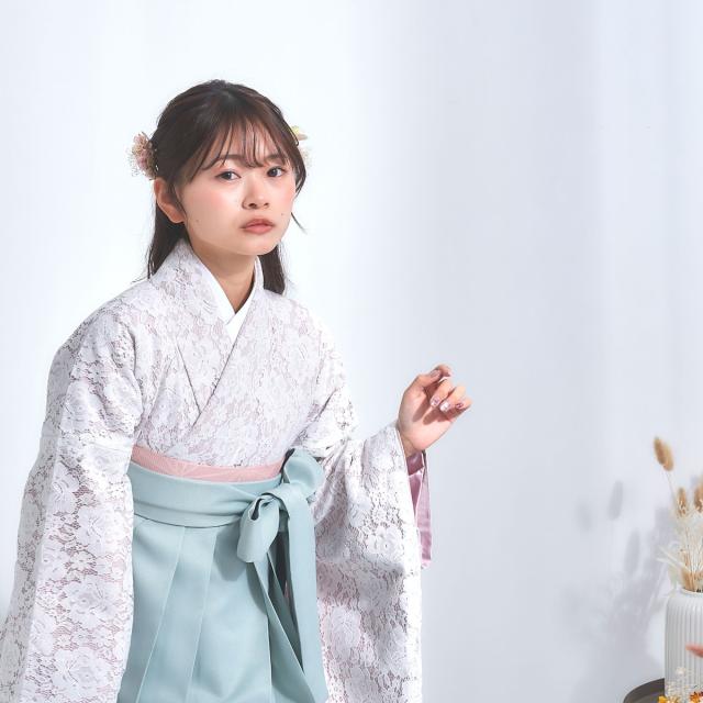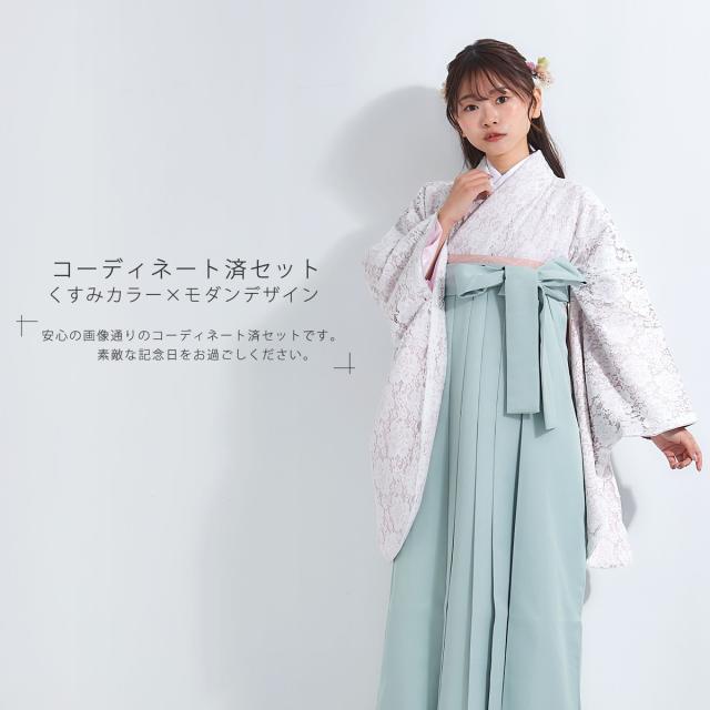 袴 4点セット 卒業式 はかま レディース レース モダン 4サイズ S M L LL ミントグリーン 薄緑 白 無地 女性 大学生 ジュニア 小学生 女の子 袴 セット着物セット 成人式 謝恩会 購入 販売 幾何学文様 送料無料