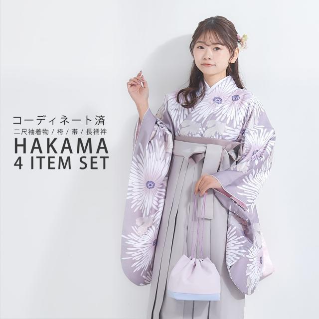 卒業式用の二尺袖着物、袴、半幅帯をコーディネートした安心の袴セットです。