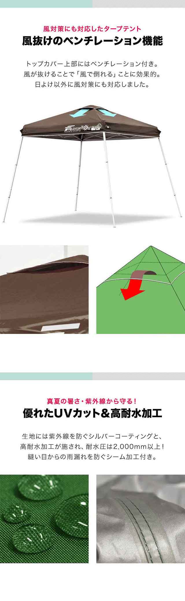 タープ タープテント ワンタッチタープ(簡易式) ワンタッチタープテント ワンタッチテント 日よけテント サンシェードテント イベントテント 集会テント 自立式タープ コンパクト コンパクトサイズ 簡易タープ 簡単タープ 組立て式 折りたたみ 折り畳み 拡張 頑丈 高耐久 熱中症対策 熱射病対策 猛暑 酷暑 真夏日 日差し シェード サンシェード 日よけ 日除け 紫外線 UVカット 紫外線対策 遮光 耐水 二人用 三人用 四人用 2人用 3人用 4人用 2名用 3名用 4名用 2人 3人 4人 天幕 ベンチレーション 風に強い アウトドア アウトドア用品 ファミリーキャンプ キャンプ キャンプ用品 キャンプ道具 Fieldoor フィールドア おしゃれ かんたん 初心者 ビギナー 道具 プライバシー 着替え 休憩 防災 災害時 避難 防災用品 庭 バルコニー ベランダ アウトドアグッズ フィールドギア アクセサリー レジャー 山 海 ビーチ 海水浴 砂場遊び フリマ フリーマーケット 公園 フェス 屋外イベント バーベキュー BBQ 運動会 クラブ活動 部活動 お花見 釣り キャンピング グランピング 防災 非常用 スポーツ・アウトドア アウトドア テント・タープ タープ