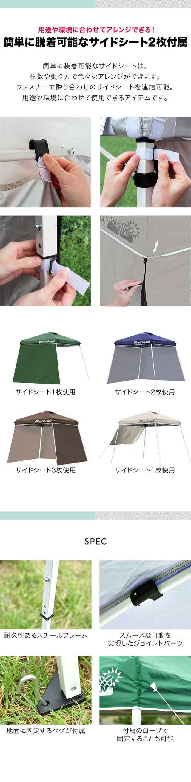 | 付属品: ・専用サイドシート(2枚) ・ロープ ・ペグ ・専用収納ケース ・取扱説明書(日本語) |