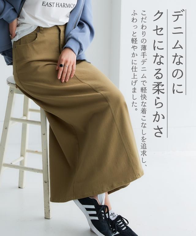ロングスカート 大きいサイズ レディース ストレッチ ゆるリラックスカラー デニム スカート ゆったり ヒップ マキシスカート 長め ロンスカ セサミグレー/ソフトカーキ/ソフトピンク/バニラソフト L/LL/3L/4L/5L ニッセン nissen