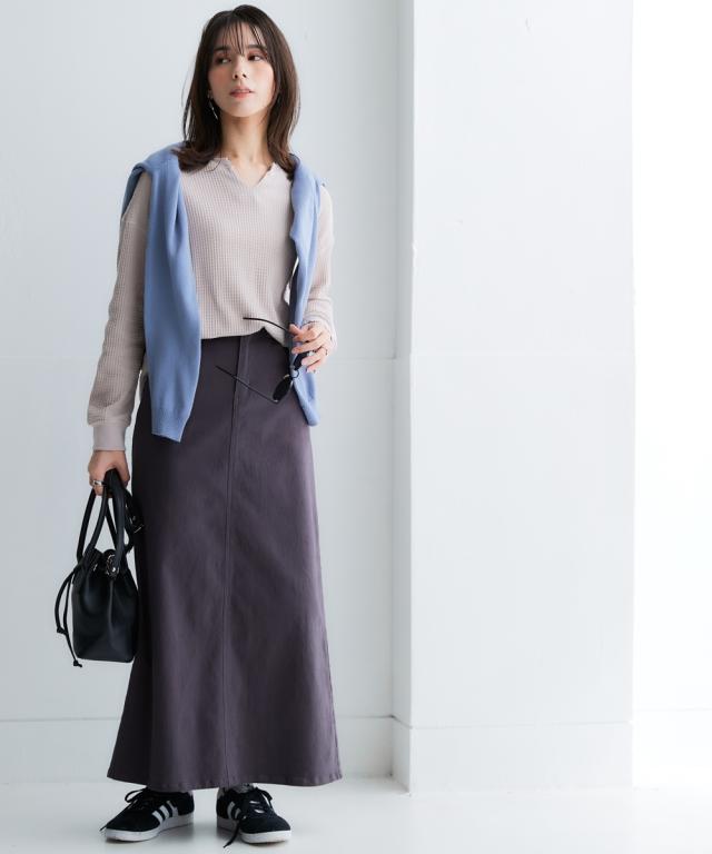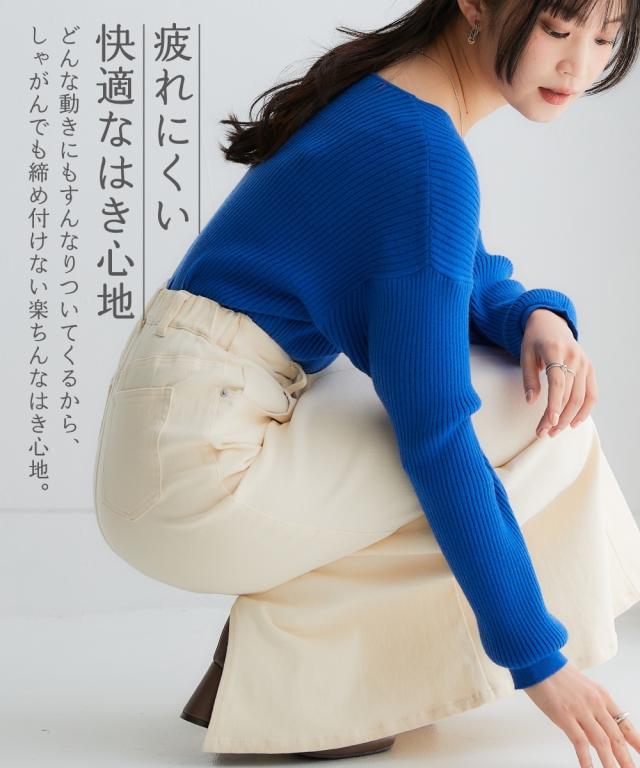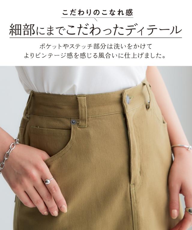 柔らかデニムで癖になる!!表情のあるヴィンテージ感 コーデを一気に華やかにしてくれる万能アイテム。■デザイン気になる下半身をしっかりカバーしつつボリューム感のあるシルエットコットンの優しい肌触りを持ちながら体型カバー力×女性らしさもグーンとUP加工感も1枚1枚しっかり丁寧に加工を仕上げたことで上質感を両立ウエストは後ろゴムデザインなのでフロントはすっきりながらもラクチンな着心地■素材さらっとさわやかな履き心地でチノにはないデニムの風合いのカラーデニム薄手で軽快な着こなしを追求しふわっと軽く仕上げました■コ