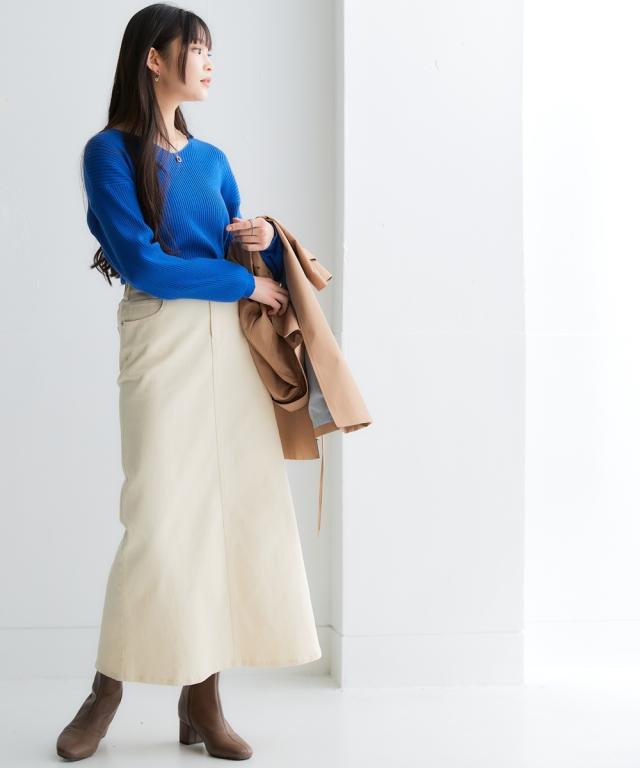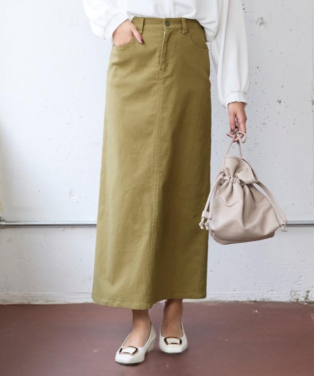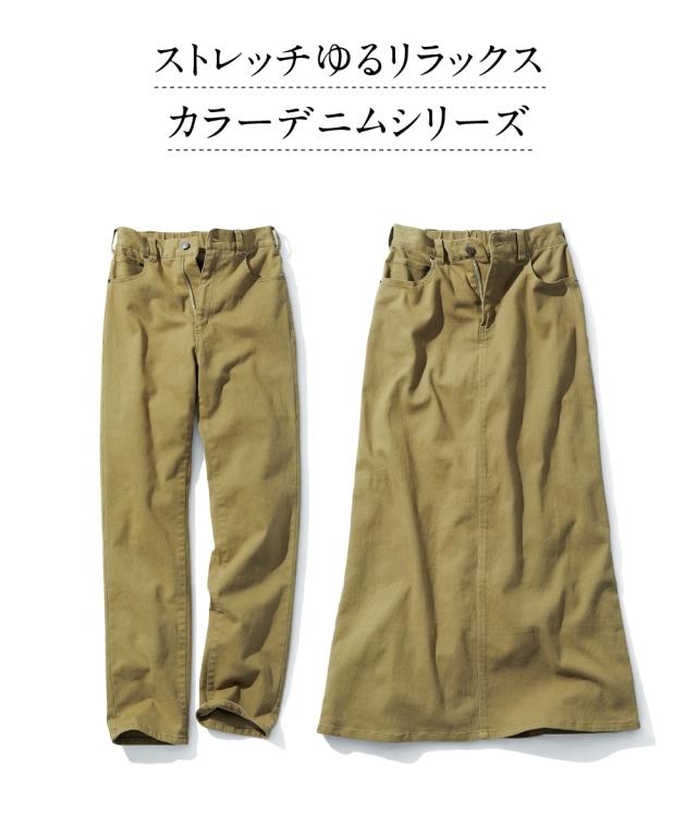 大きいサイズ ストレッチゆるリラックスカラーデニムスカート(ゆったりヒップ)