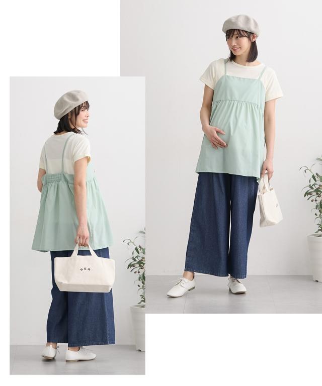 品質:[Tシャツ]ポリエステル65%・綿35%(カットソー 天竺)[キャミソール]ポリエステル65%・綿35%(織物 ブロード) 透け感:やや透ける( 淡色 ) *アイテム・色によって透け感が異なる場合があります。淡色カラーはベージュインナーの着用をおすすめします。 伸縮性:[Tシャツ]あり[キャミソール]なし 生地の厚み:[Tシャツ]普通[キャミソール]薄い 開き:なし[キャミソール]後ろ中心ゴム) 裏地:なし ポケット:なし シルエット:普通 原産国:中国製 備考:洗濯機OK ネット使用 単位:cm ※サイズの誤差は多少発生します。ご了承ください。 ※妊娠期のサイズ変化に個人差はありますが、基本的に妊娠前と同じサイズをお選びください。 妊娠前:Mサイズ⇒妊