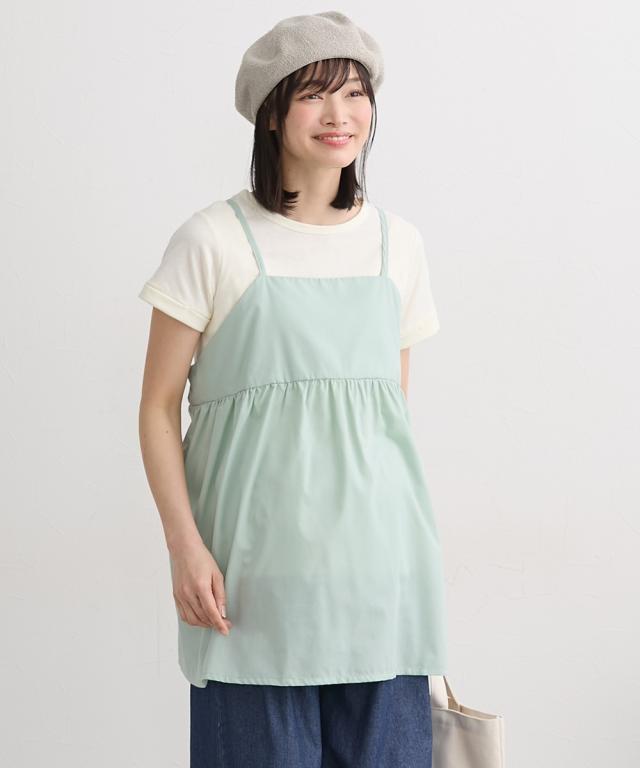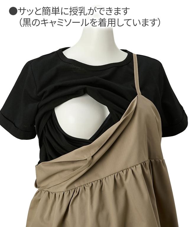 重ね着しても、単品でも使いやすい!授乳Tシャツとキャミソールの2点セットです