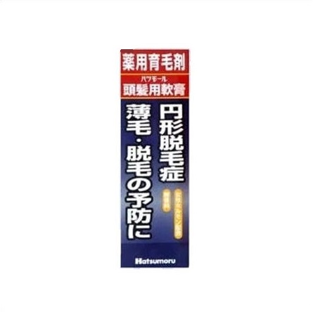 ●ハツモール頭髪用軟膏は、薄毛・円形脱毛症・脱毛の予防などに効果のある有効成分を数種配合した育毛剤です。 軟膏タイプで塗布しやすく、局部(頭皮)に密着するため持続効果と保湿効果に優れています。 頭皮の毛細血管の働きを活性化し、毛乳頭の賦活作用を促進して衰えた細胞を活発にし、毛根部の障害を回復し、発毛を促進します。 薄毛、円形脱毛症、粃糠性脱毛症※、フケ、かゆみ、 病後・産後の脱毛、脱毛予防 ※粃糠性脱毛症とは、皮脂の分泌異常により角質が はがれて出来るフケが原因となって引き起こされる 脱毛症です。 女性ホルモン配合 無香料