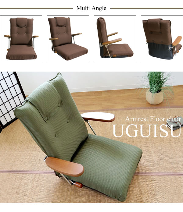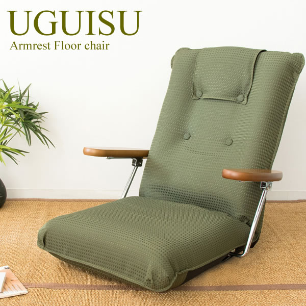座椅子 ハイバック 肘掛け 完成品 日本製 国産 レバー式 座ったまま リクライニング 座椅子 おしゃれ 和モダン 頑丈 丈夫 フロアチェア フラット ファブリック 木製 ポンプ肘 幅66cm 奥行62〜114cm 高さ12〜67cm 座面高さ12cm 和室 洋室 リビング 木目 グリーン ブラウン