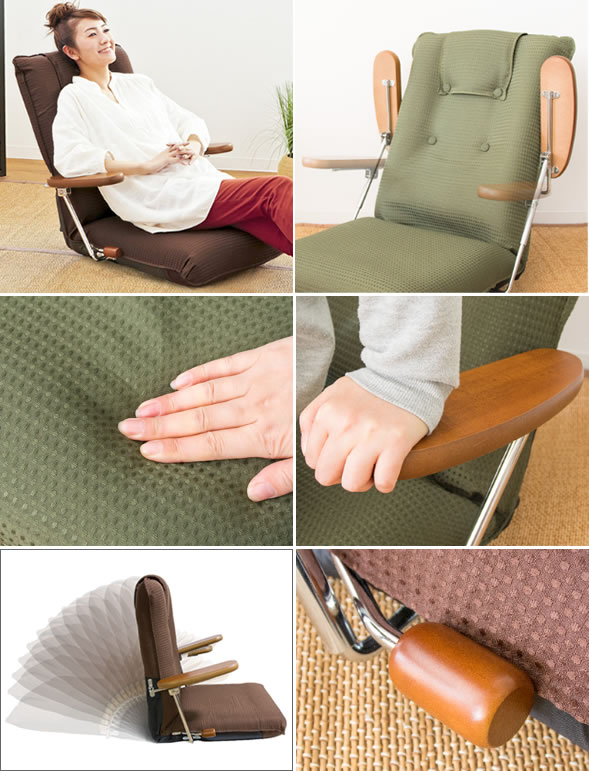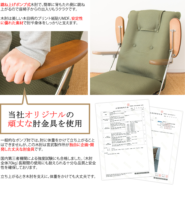 特製のオリジナルの肘金具を使用しているのでとても丈夫で、立ち座りに便利です。