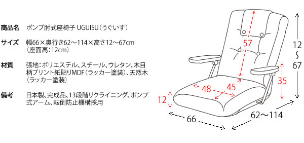 備考 日本製、完成品、13段階リクライニング、ポンプ式アーム