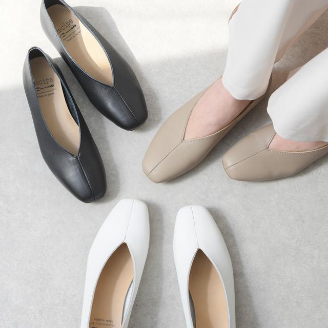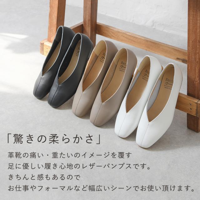 パンプス レディース 本革 レザー 牛革 革靴 ぺたん ローヒール フラットシューズ コンフォートシューズ Vカット スクエアトゥ 日本製 国産 痛くない 柔らかい 歩きやすい 走れる 軽い 軽量 痛くない お仕事 仕事 旅行 フォーマル ブラック 黒 ベージュ グレージュ ホワイト 白
