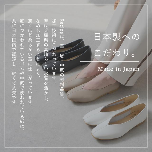 パンプス レディース 本革 レザー 牛革 革靴 ぺたんこ ローヒール フラットシューズ コンフォートシューズ Vカット スクエアトゥ 日本製 国産 痛くない 柔らかい 歩きやすい 走れる 軽い 軽量お仕事 仕事 旅行 フォーマル 黒 ベージュ グレージュ 白 春新作