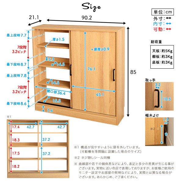 ●棚板は可動棚付きで、収納物に合わせて高さを調節できます。
