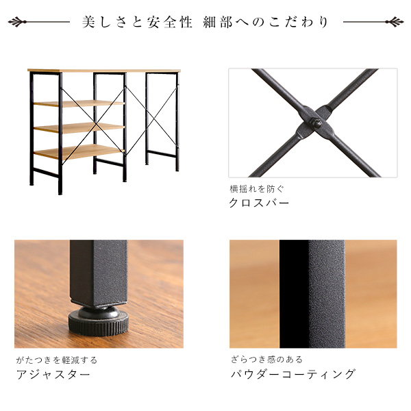 ●スチール製のフレームは頑丈で、電子レンジやオーブンなどのキッチン家電置きにもおすすめです。