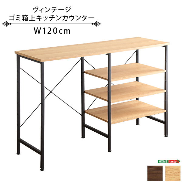 ゴミ箱上キッチンカウンター ゴミ箱上収納ラック 幅120cm おしゃれ ヴィンテージ調 木目 ブラックスチール