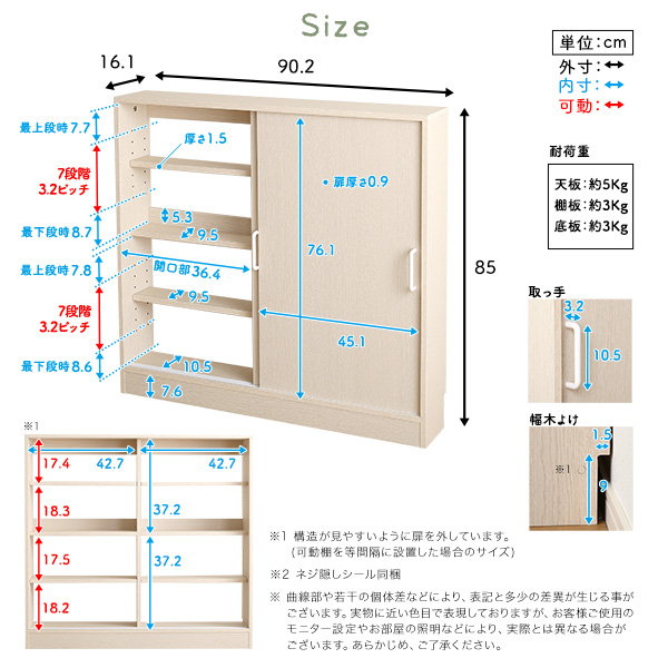 ●棚板は可動棚付きで、収納物に合わせて高さを調節できます。