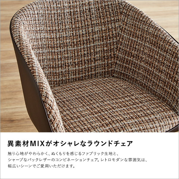 ダイニングチェア デスクチェアー 椅子 1脚 単品 回転式 ラウンド おしゃれ ナチュラル ファブリックダイニングチェア