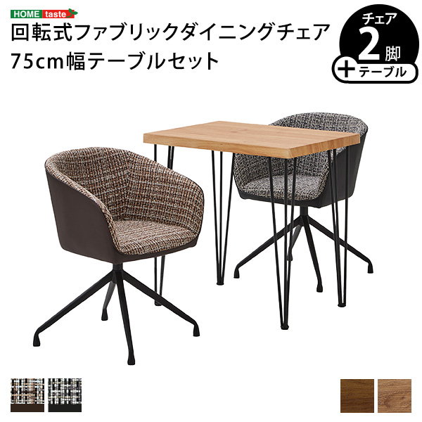 ダイニングテーブルセット 幅75cm 2人用 おしゃれ ヴィンテージ調 回転式 ファブリック ダイニングチェア2脚 テーブル1台 3点セット