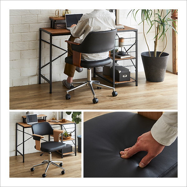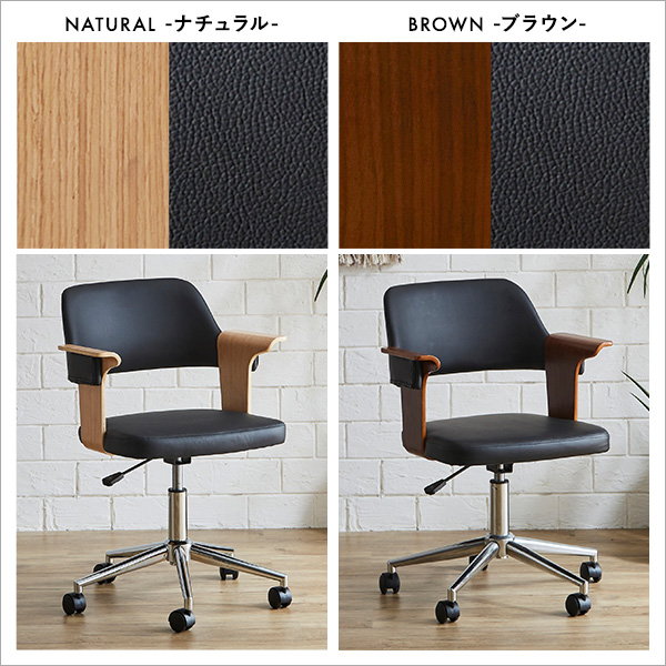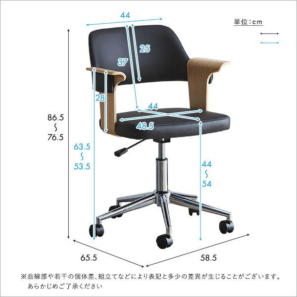 デスクチェア オフィスチェア チェアー 学習椅子 パソコンチェア 回転 昇降式 肘掛け付き おしゃれ モダン 曲木 レザー調