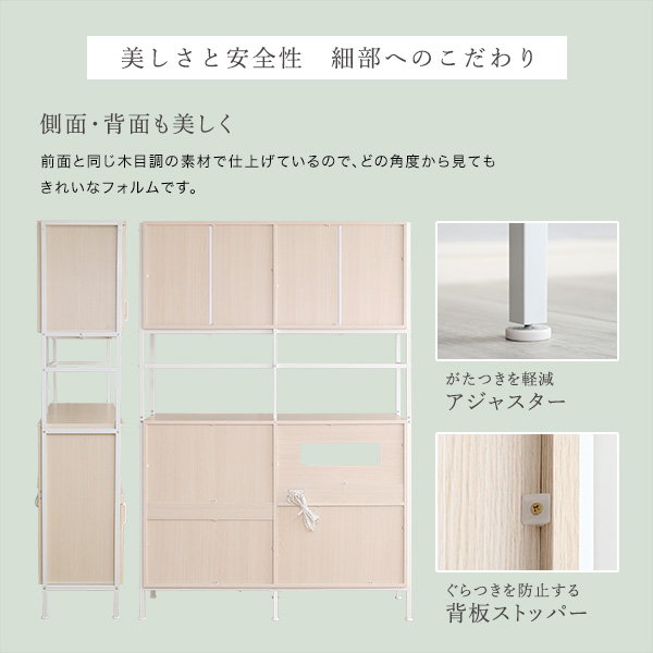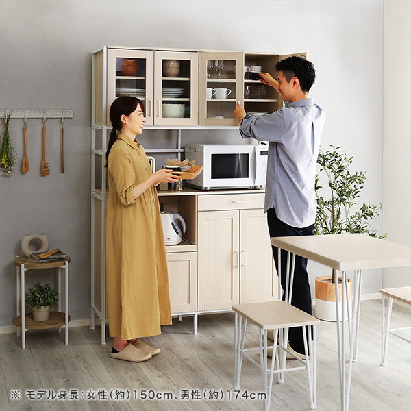 食器棚 キッチンラック カップボード 幅122.6cm ワイドタイプ おしゃれ ナチュラル キッチン 収納棚 食器 電子レンジ オーブン 調理器具