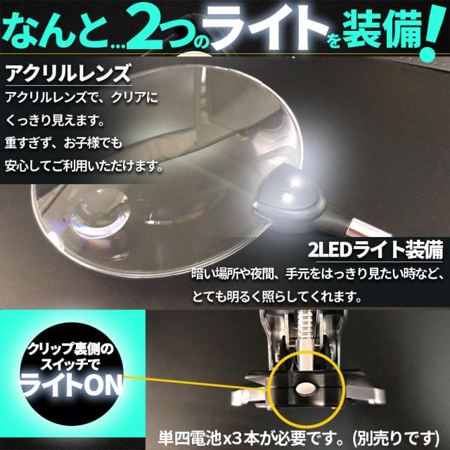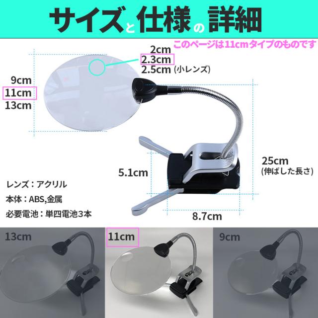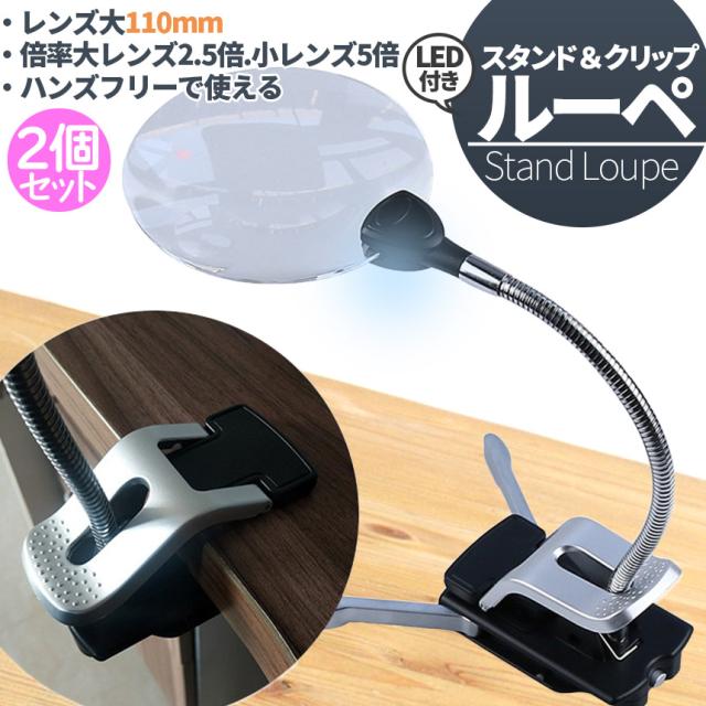 スタンドルーペ ルーペ LED付き 11cm 2個セット スタンド クリップ アーム付き 拡大鏡 虫眼鏡 虫メガネ 読書 新聞 観察 プラモデル 精密作業