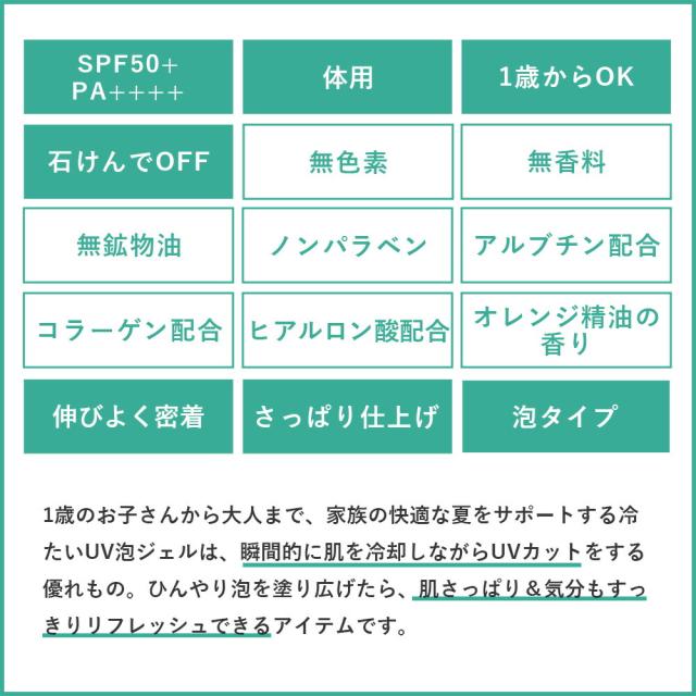 紫外線予報 冷たいUV泡ジェルF 90g SPF50+ PA++++ for family UV対策 UVケア 日焼け止め 日焼けどめ 泡ジェル 子供 子ども こども 紫外線対策 ボディケア UVカット ts1031