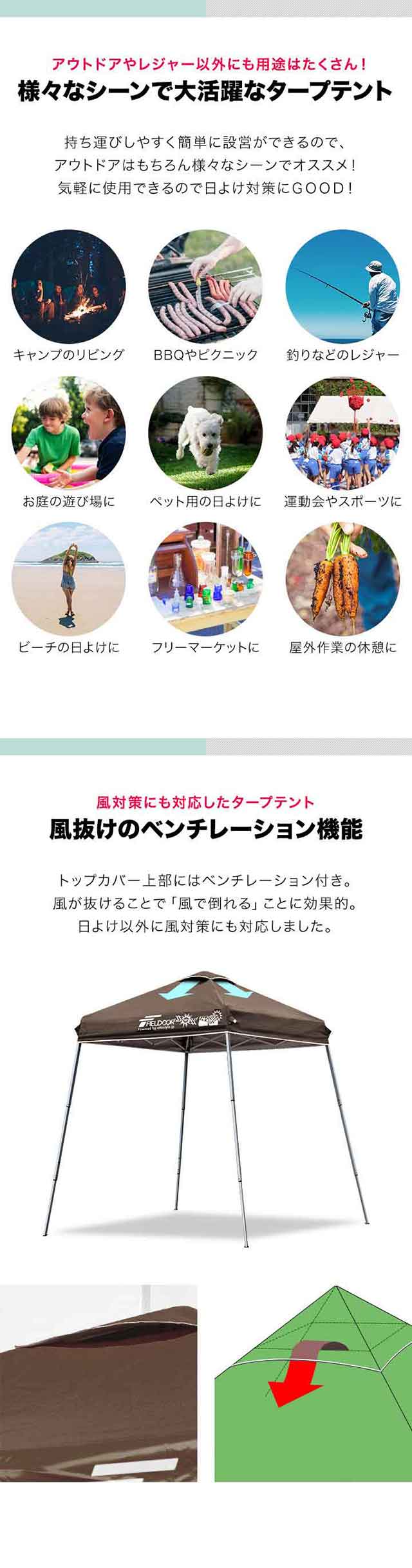 タープ タープテント ワンタッチタープ(簡易式) ワンタッチタープテント ワンタッチテント 日よけテント サンシェードテント イベントテント 集会テント 自立式タープ コンパクト コンパクトサイズ 簡易タープ 簡単タープ 組立て式 折りたたみ 折り畳み 拡張 頑丈 高耐久 熱中症対策 熱射病対策 猛暑 酷暑 真夏日 日差し シェード サンシェード 日よけ 日除け 紫外線 UVカット 紫外線対策 遮光 耐水 二人用 三人用 四人用 2人用 3人用 4人用 2名用 3名用 4名用 2人 3人 4人 天幕 ベンチレーション 風に強い アウトドア アウトドア用品 ファミリーキャンプ キャンプ キャンプ用品 キャンプ道具 Fieldoor フィールドア おしゃれ かんたん 初心者 ビギナー 道具 プライバシー 着替え 休憩 防災 災害時 避難 防災用品 庭 バルコニー ベランダ アウトドアグッズ フィールドギア アクセサリー レジャー 山 海 ビーチ 海水浴 砂場遊び フリマ フリーマーケット 公園 フェス 屋外イベント バーベキュー BBQ 運動会 クラブ活動 部活動 お花見 釣り キャンピング グランピング 防災 非常用 スポーツ・アウトドア アウトドア テント・タープ タープ