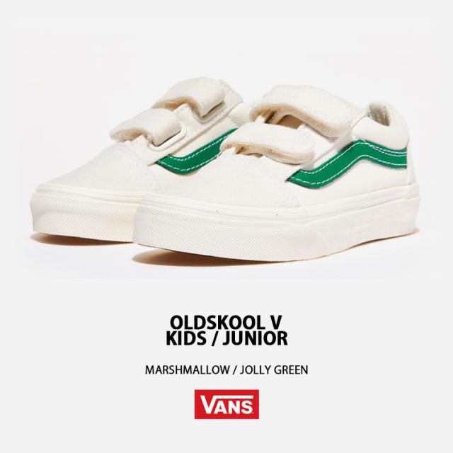 VANS バンズ キッズ スニーカー OLDSKOOL V MARSHMALLOW JOLLY GREEN VN0A4BUVRFX ベルクロ マジックテープ オールドスクール マシュマロ