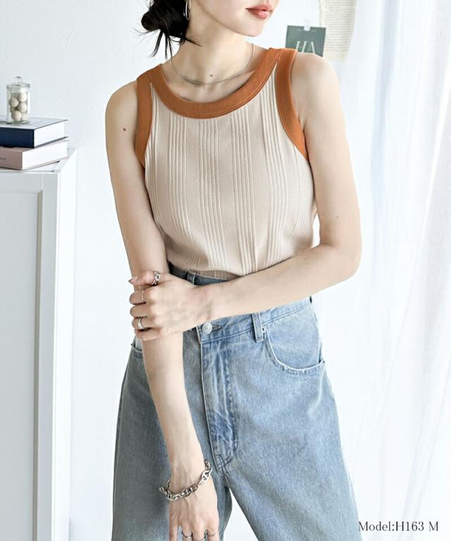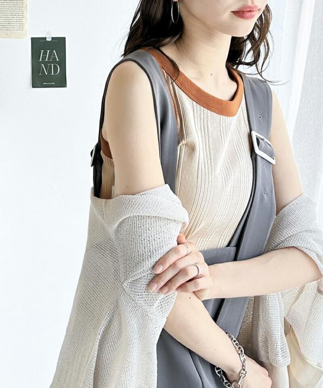 クラシカルエルフ 冬新作 sustaina+ トップス タンクトップ レディース オーガニックコットン 配色 リブ ランダム テレコ アソート アメリカンスリーブ タンクトップ レイヤードコーデ 大きいサイズ 2024ss ce1260115