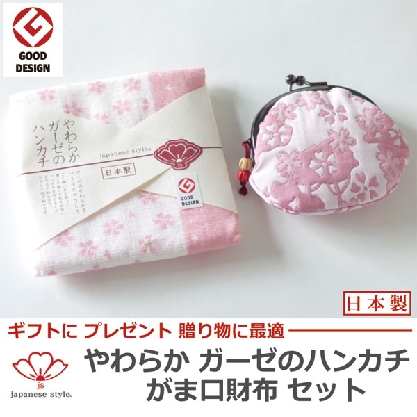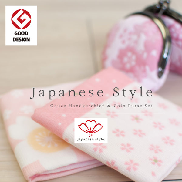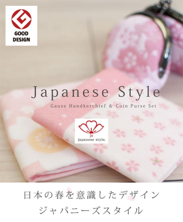 国産 ガーゼタオルハンカチ japanese style ハンカチーフ& コインパースセット(がま口財布) 送料無料 日本製 国産 泉州タオル ハンカチーフ ミニハンカチタオル さくらまつり ひなまつり 七五三 数量限定 粗品 プレゼントに 子ども 子供用 保育園 幼稚園 お祝いに