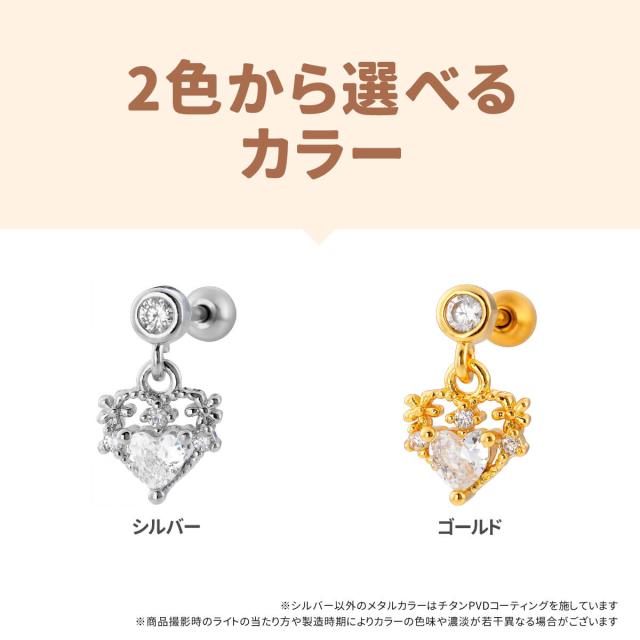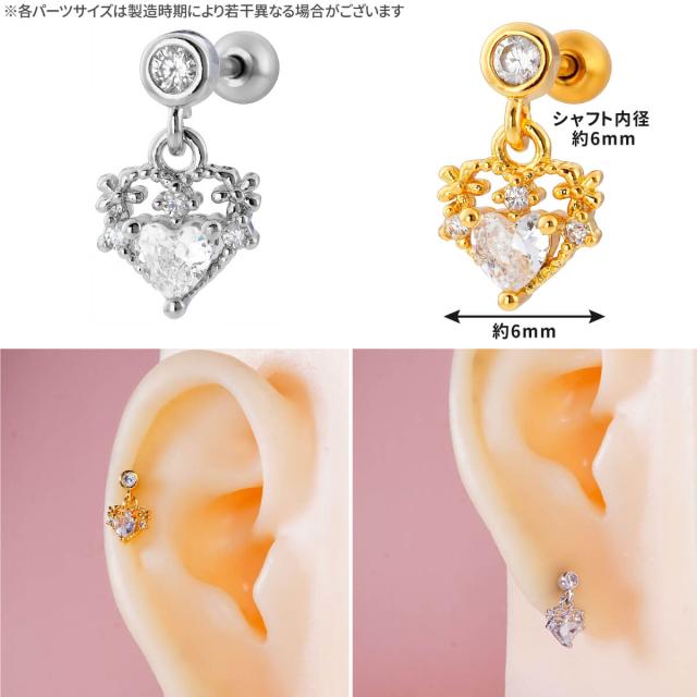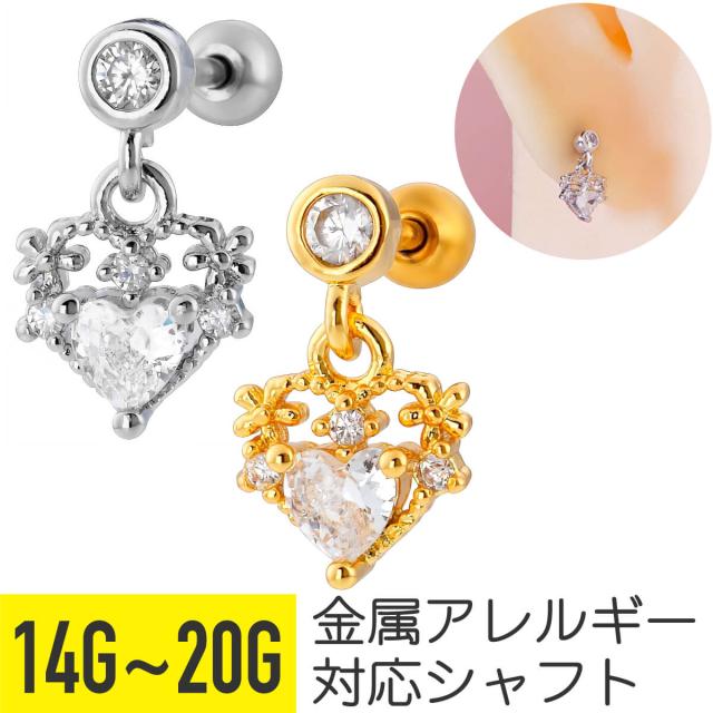ジュエル ハート フラワー チャーム ストレートバーベル 14G 16G 18G 20G サージカルステンレス ヘリックス 軟骨ピアス ボディピアス