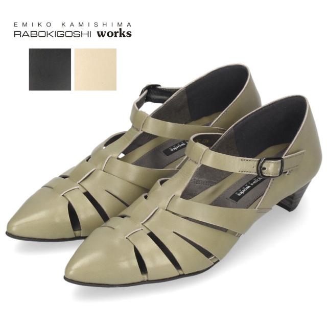 グルカシューズ レディース パンプス 黒 ローヒール 本革 ラボキゴシワークス 12767 ブラック グレー ベージュ 靴 カジュアル ミュール RABOKIGOSHI works