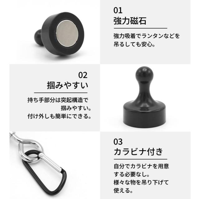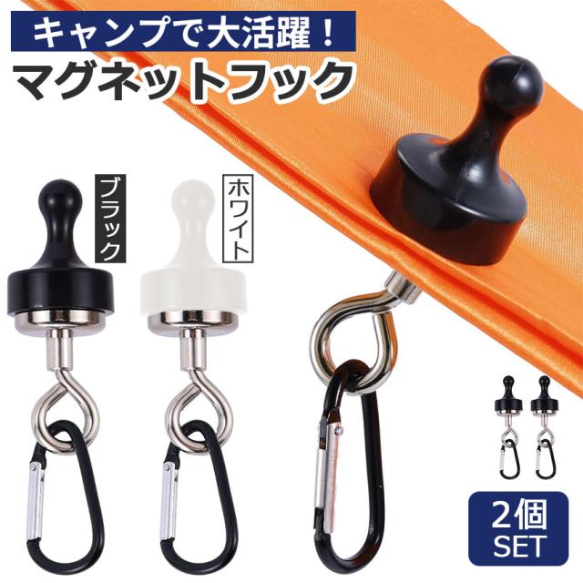ランタンフック 2色選べる 2個セット マグネットフック 磁石 カラビナ テント タープ キャンプ アウトドア 吊り下げ ハンガー 小物 冷蔵庫 グッズ アウトドア用品 キャンプグッズ ランタンハンガー ブラック ホワイト 黒 白