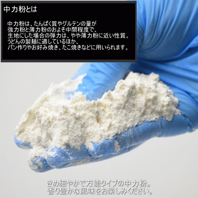 味わいと香り 中力粉 中力粉は、たんぱく質やグルテンの量が 強力粉と薄力粉のおよそ中間程度で、 生地にした場合の弾力は、やや薄力粉に近い性質。 うどんの製麺に適しているほか、 パン作りやお好み焼き、たこ焼きなどに用いられます。 きめ細やかで万能タイプの中力粉。香り豊かな風味をお楽しみください。 |