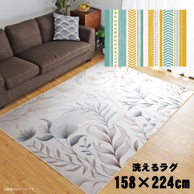 ・裏面不織布加工で床面を気づ付けません、オシャレなプリントラグです。
