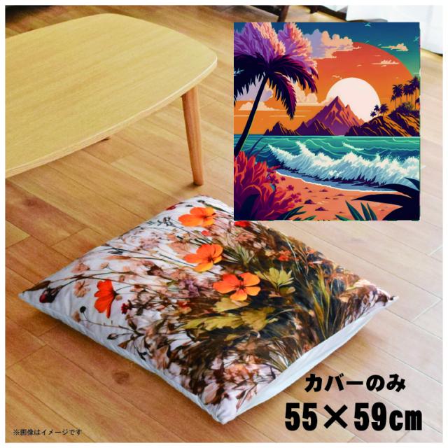 座布団 座布団カバー カバーのみ おしゃれ 約55×59cm 北欧 洗える ファスナー付 新生活 イラスト かわいい リビング 子供部屋 ソファ インテリア なめらか ふわふわ 洗濯OK 転写プリント CSC-B005 南国ビーチ