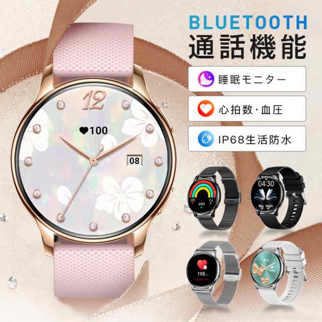 スマートウォッチ・レディース・メンズ・腕時計・日本製センサー・高品質・健康管理・1.32インチ・IP68防水・血中酸素・血圧・心拍数・運動記録・睡眠モニター・BLUETOOTH音声通話・DIY文字盤・天気・メール・SNSアプリ通知・日常・可愛い・男女通用